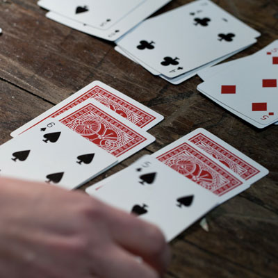 Deal Ten piles of four cards each, dealt by rows, the first three rows face down, and the last row face up. Remaining cards are placed in a pile to form the Stock.