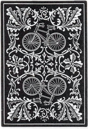 The Joker is an American invention dating from about 1865 and has made different appearances in the Bicycle® card line. The first type represented a man on a high-wheeled bike. The bicycle later acquired two wheels of normal size. Then followed a series of playing card kings on bikes. These cyclists wheel past a milestone marked "808." Contrary to some opinions, this number has no mystical meaning. It is merely a reference number distinguishing this brand from others (such as "606") by the same company.