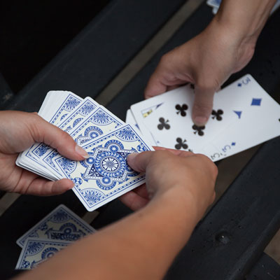 The deck is divided evenly, with each player receiving 26 cards, dealt one at a time, face down. Anyone may deal first. Each player places their stack of cards face down, in front of them.